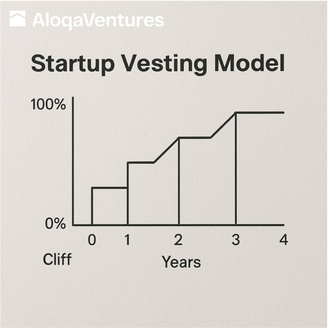 Startaplardagi eng keng tarqalgan model — 4 yillik vesting + 1 yillik cliff: